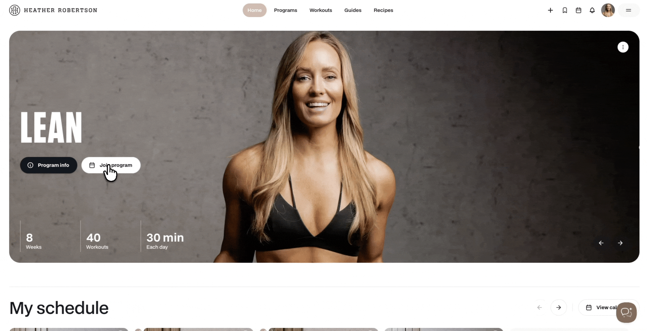 - Upcoming program workouts will be visible in the My Schedule section