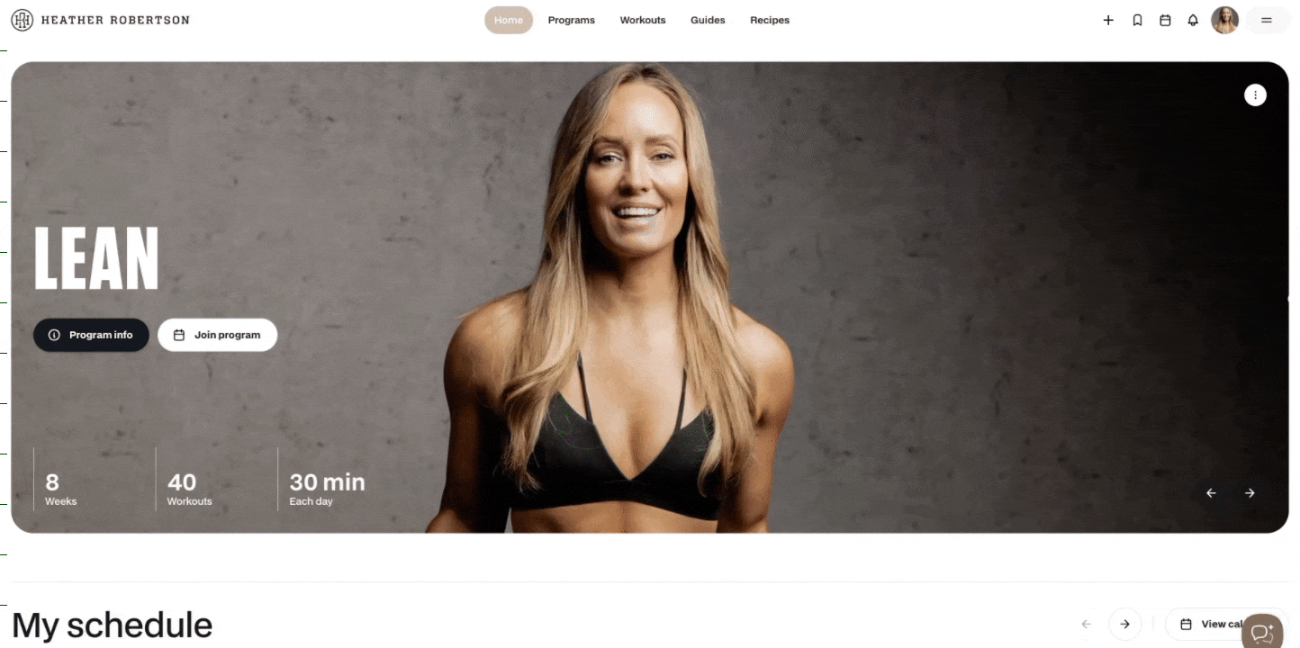 Programs are structured plans designed by Heather to guide you through a series of workouts over a set number of days or weeks. They’re built for momentum, progression, and confidence - and they’re one of the most powerful ways to stay focused and consistent inside the HR App. This article walks you through finding, joining and completing one of the app programs.