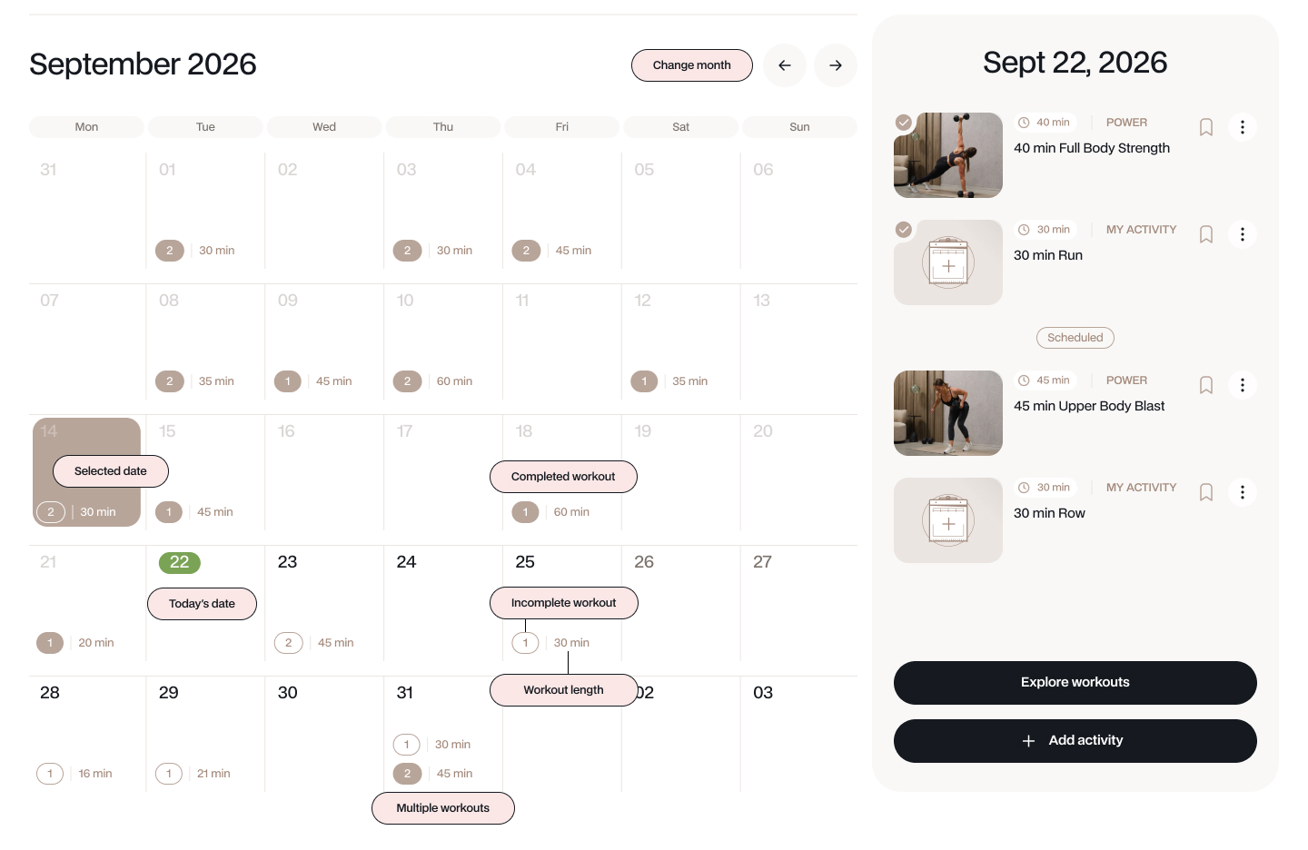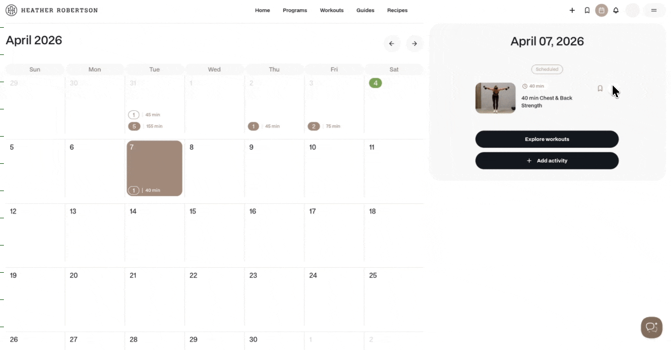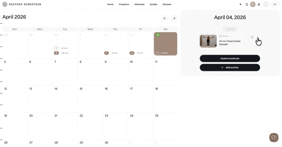 - Program workouts: are automatically added to your calendar when you join a program