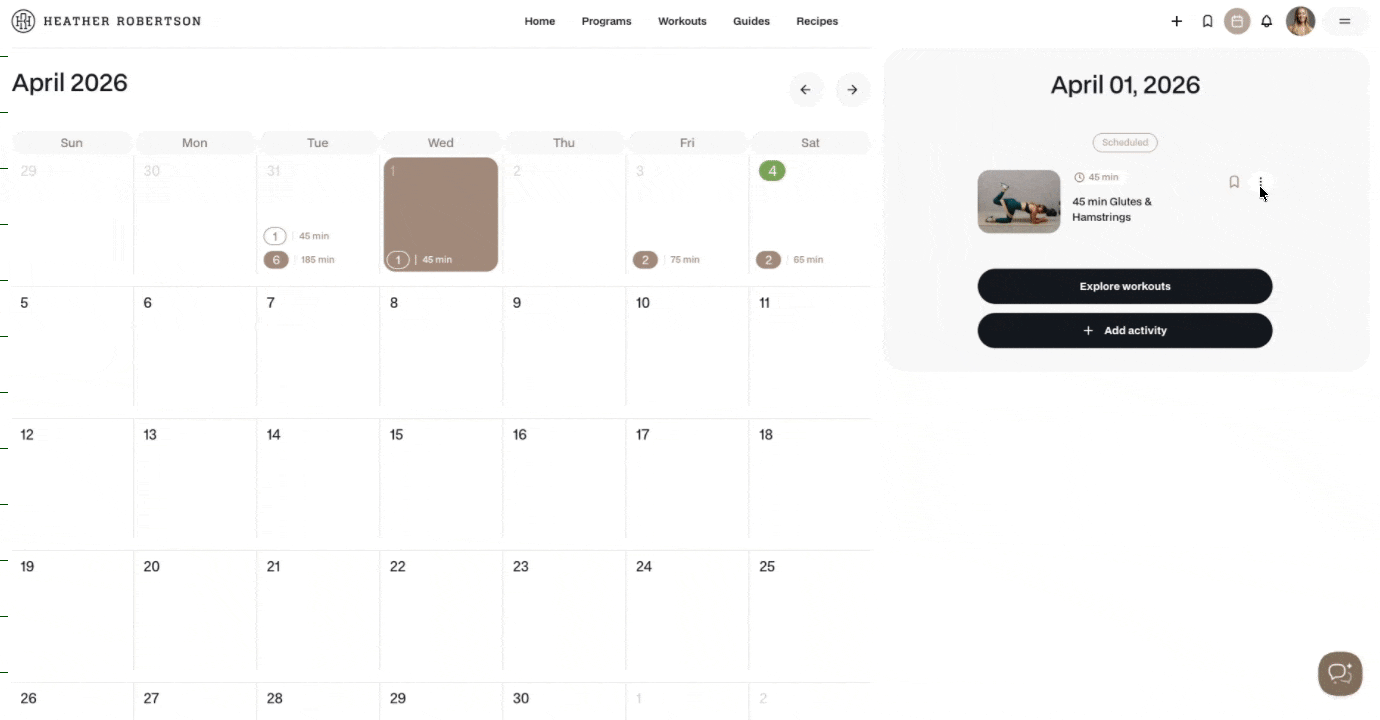 - Scheduled Individual workouts: You scheduled and added them to the calendar from the individual workout library.
