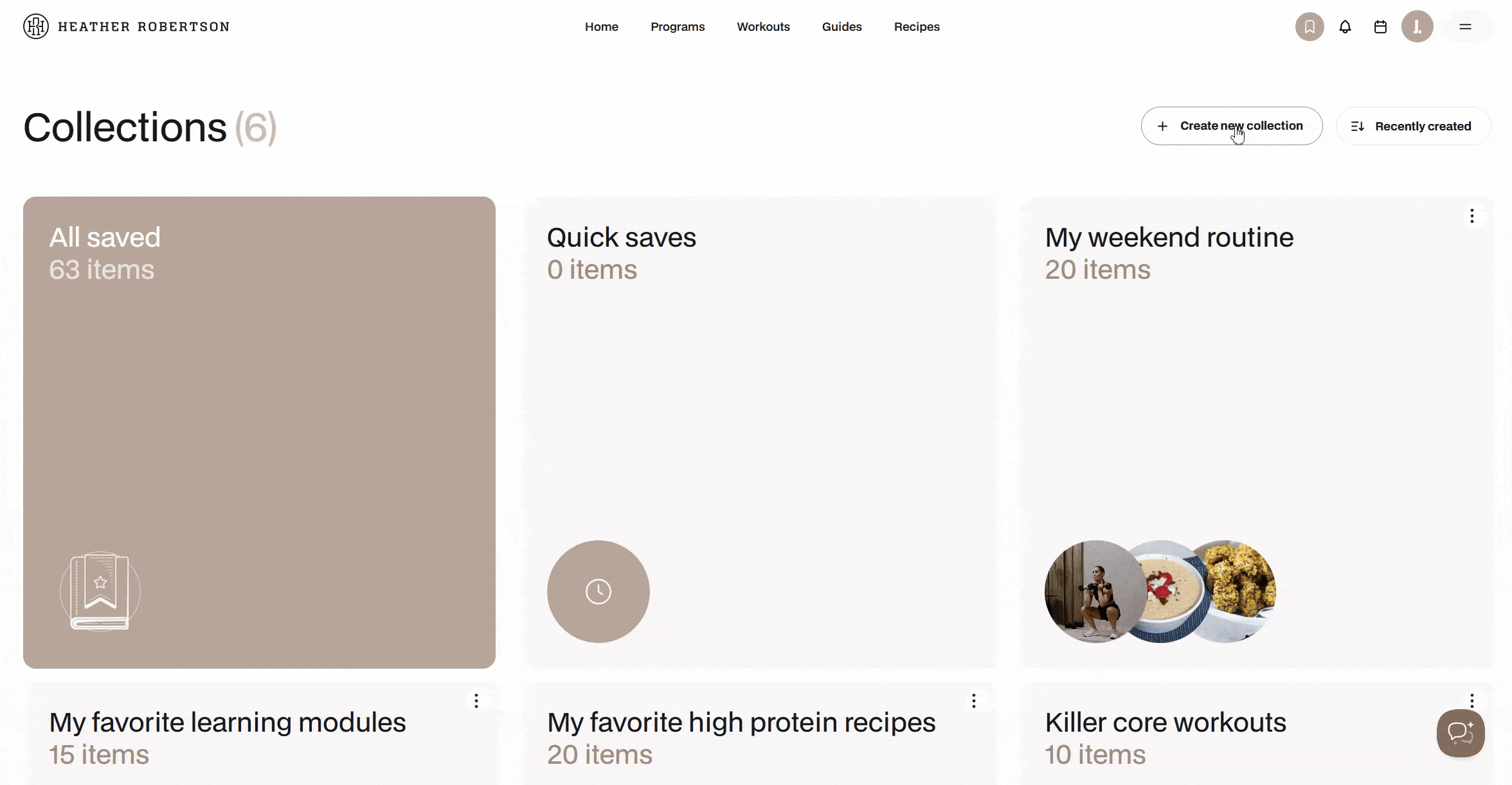Collections are your personal library inside the HR App—where you save your favorite programs, workouts, guides, modules and recipes so you can easily return to them anytime. Think of it as your own curated space: quick access, tailored just for you.