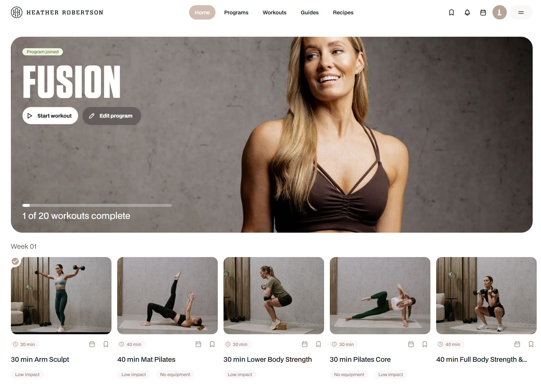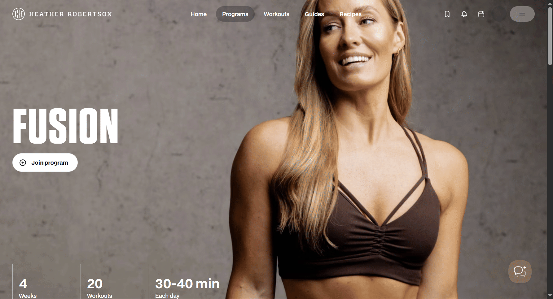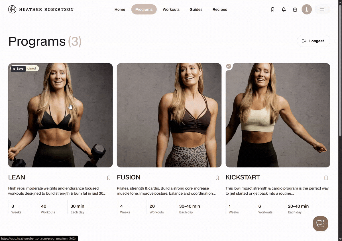 Programs are structured plans designed by Heather to guide you through a series of workouts over a set number of days or weeks. They’re built for momentum, progression, and confidence — and they’re one of the most powerful ways to stay focused and consistent inside the HR App.