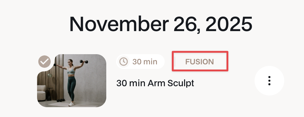 - Your calendar: workouts that are part of a program will show the program name next to it.