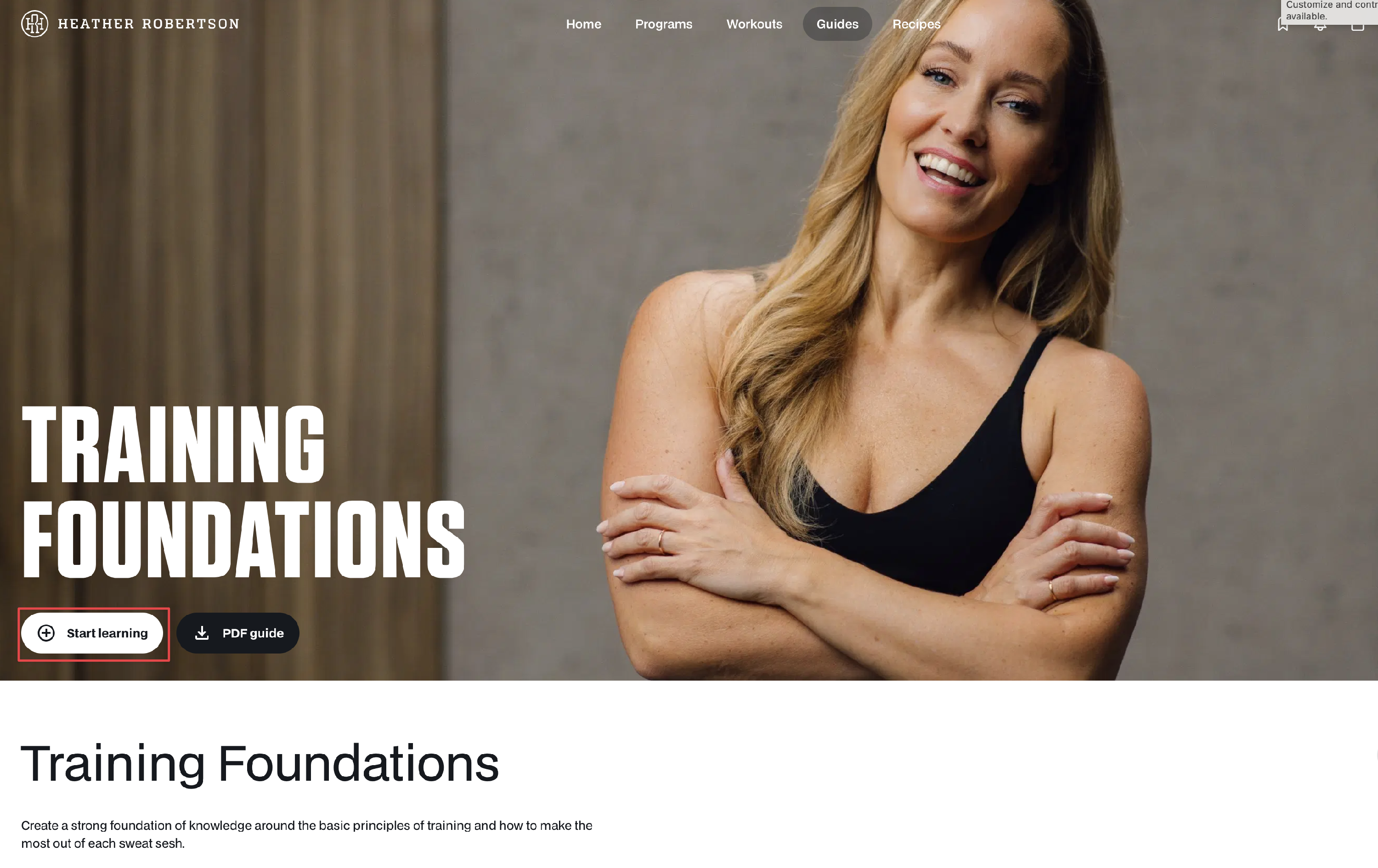 From the Guide details page you can select Start Learning to work your way through the modules. Each module contains an informative video where Heather shares her fitness and nutrition insights with you and highlights some key take-away tips.