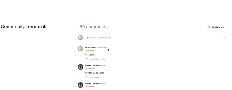 You can leave a comment for your sweat mates on any program, workout, recipe or guides. Scroll to the bottom of the screen and leave some inspiration. You can also reply or react to another users comments.
