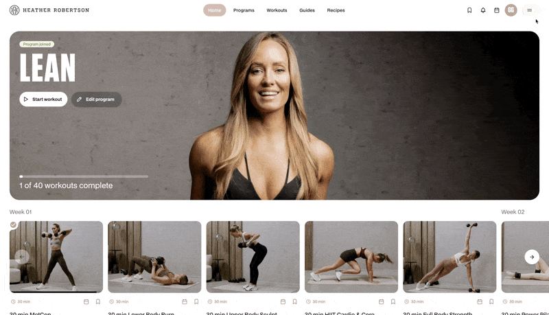 Connect with other sweat mates from around the world on the official Heather Robertson Facebook Community Forum. Share your fitness journey, get inspired and stay motivated!