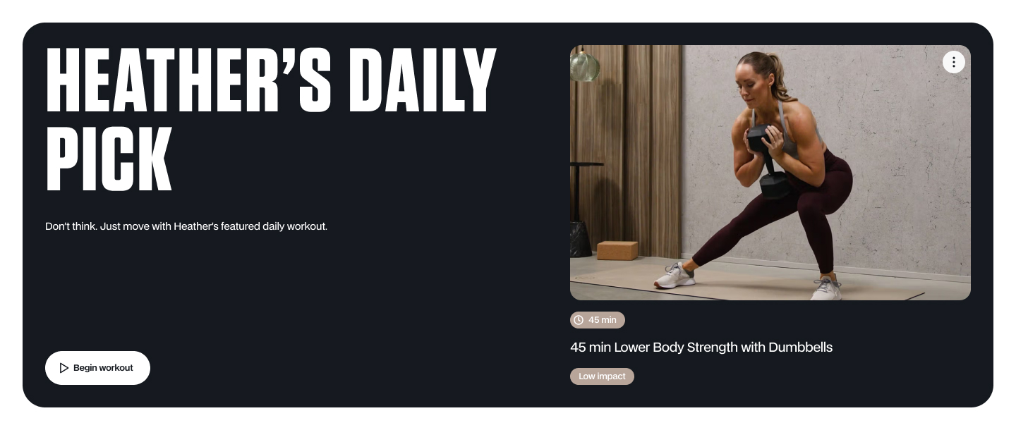 Heather’s Daily Pick is a curated daily workout - giving you one great option that’s always ready to go.